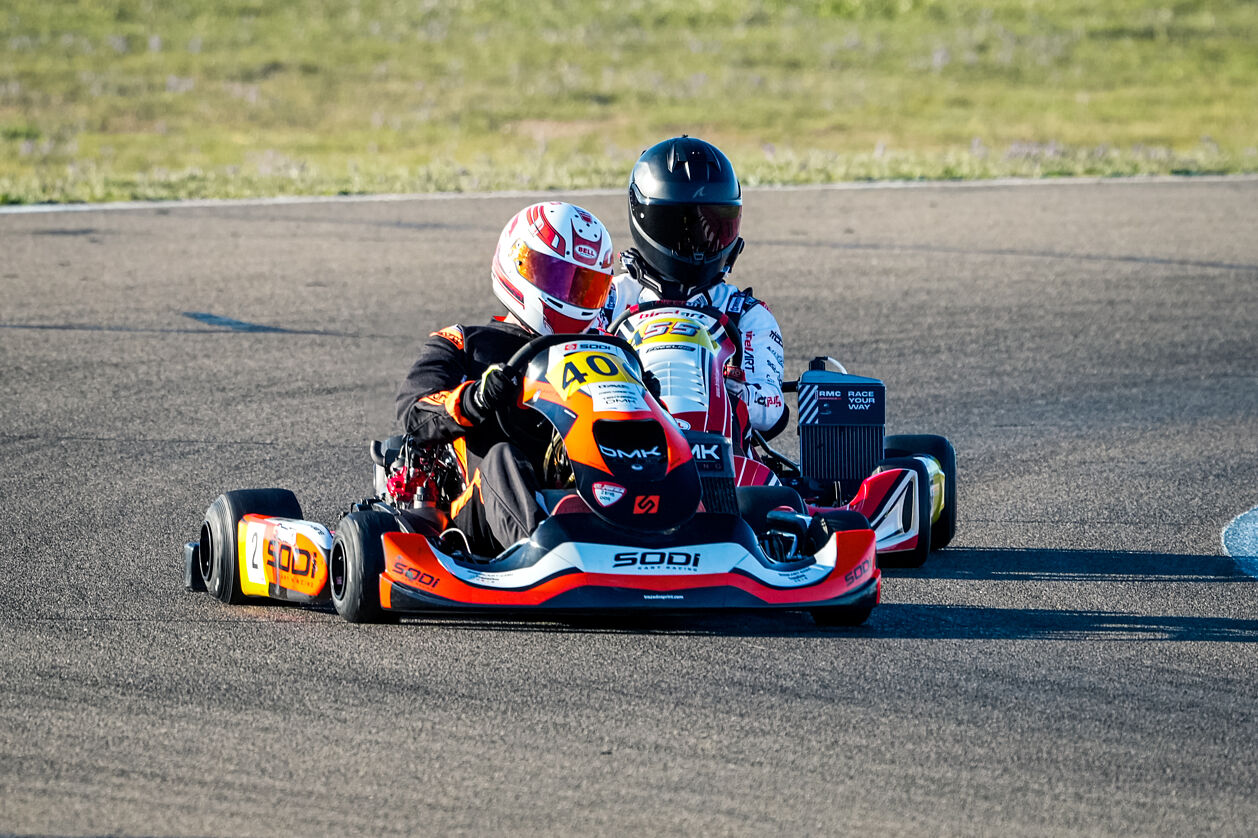 La categoría DD2 (Direct Drive 2-speed) se consolidó en Zuera como la alternativa tecnológica más sofisticada para los amantes de las marchas. A diferencia de la categoría KZ, los DD2 destacan por su cambio secuencial en el volante y la ausencia de cadena, lo que exige una finura de pilotaje extrema, especialmente en un circuito tan ancho y rápido como el aragonés.